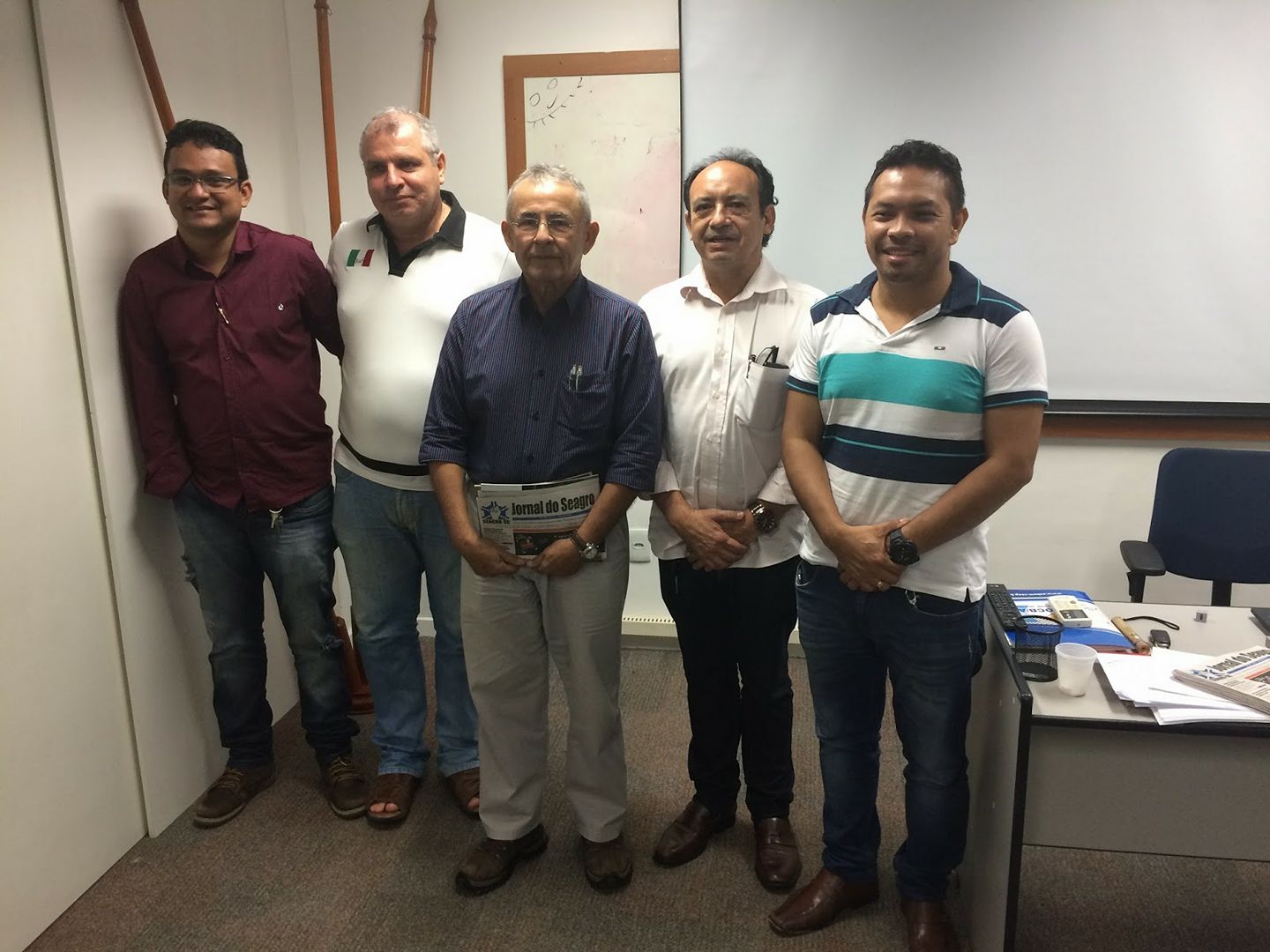 *Foto: Audiney Lima Leite, Alexandre Henrique, Wandecy Campos e Pedro Chaves, juntos com o Presidente da AEAEA, Eng. Agr. Valdenor Cardoso (centro).