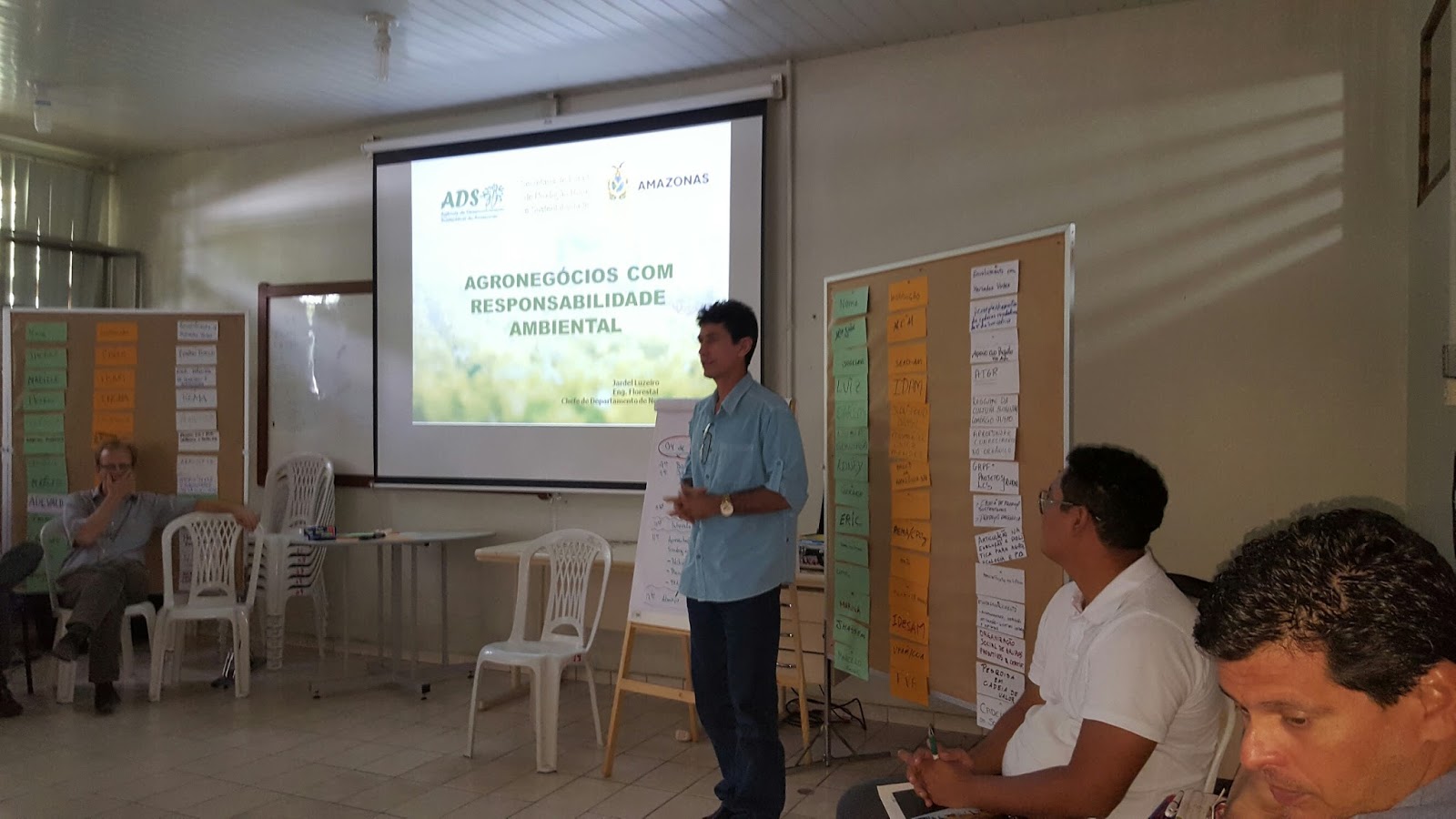 | Nesta terça (04), na UFAM, durante apresentação do Projeto Mercados Verdes e Consumo Sustentável, parceria entre o ex-MDA e a GIZ, o técnico da ADS, Jardel, destacou a importância do PREME, PROMOVEIS e das FEIRAS no desenvolvimento do setor primário do Amazonas. Lembrou que a ADS aguarda sinalização da SEDUC para comprar as vassouras da Região do Rio Negro, defendeu o fortalecimento do PROMOVEIS e, também, que o PREME tem R$ 37,9 milhões para o corrente ano.