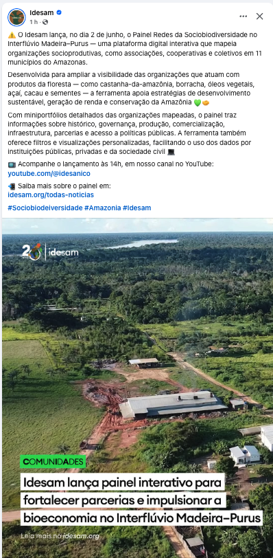Além disso, o IDESAM tem uma estreita parceria com a SUFRAMA, no âmbito do PPBio. Essa mesma ONG ingressou na Justiça para tentar barrar o asfaltamento da BR-319, uma obra fundamental para a integração regional e o desenvolvimento socioeconômico do Amazonas.