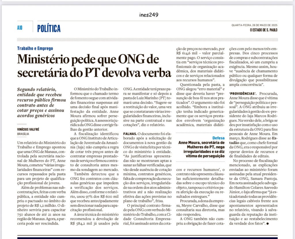 Quero saber qual vai ser o parlamentar da Assembleia Legislativa do Amazonas que vai ter a iniciativa e a coragem de pautar a abertura de uma CPI para investigar as ONGs ambientalistas que atuam no Amazonas. Já receberam bilhões, e até hoje não sabemos quem recebeu milhões da FAS para fazer “assistência técnica” entre engenheiros agrônomos, florestais e de pesca nas Unidades de Conservação. Ao mesmo tempo, aproveitar para investigar não só essa matéria do jornal Estado de São Paulo, assim como as entidades que estão recebendo doações da CONAB e, também, a compra de farinha de mandioca para verificar se é, realmente, produzida no Amazonas. Nossos caboclos já estão cansados de serem utilizados. O PAA, como já disse, é uma das melhores criações do PT, que ajudei a construir, portanto, não podemos manchar esse programa que já deveria ser política.