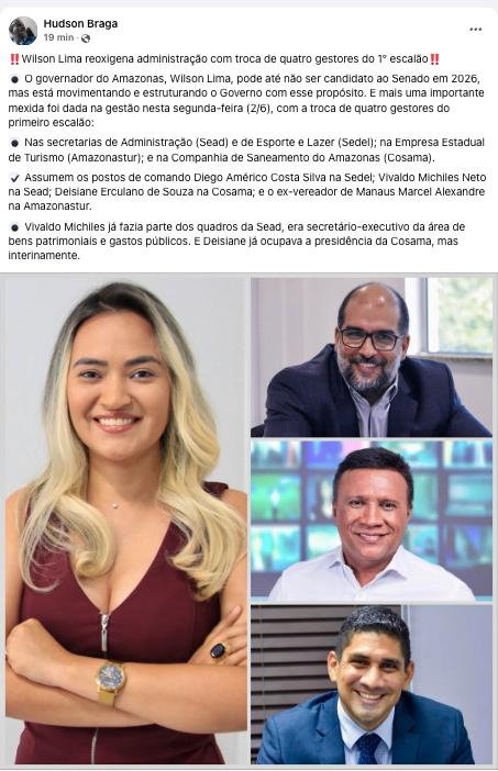Veja matéria no G1, Portal Único e face do Hudson Braga. Ainda nenhuma mudança na área ambiental do Estado, especificamente na SEMA, nem na ADS, órgãos que vem desgastando a imagem do governador do Estado. Quem vem mandando na área ambiental são ONGs e ONGUEIROS que, sabidamente, jogam contra o povo do Amazonas.