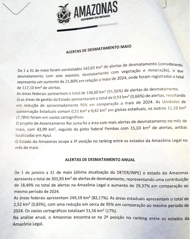 Está circulando em grupos de WhatsApp a cópia do ofício nº 1466/2025, enviado ao Ministério do Meio Ambiente e assinado pelo atual titular da Secretaria de Estado do Meio Ambiente do Amazonas (SEMA). O documento, endereçado à ministra Marina Silva, solicita “apoio” federal para ações de fiscalização ambiental justamente na região que hoje vive um cenário de tensão: o município de Apuí, no Sul do Amazonas.