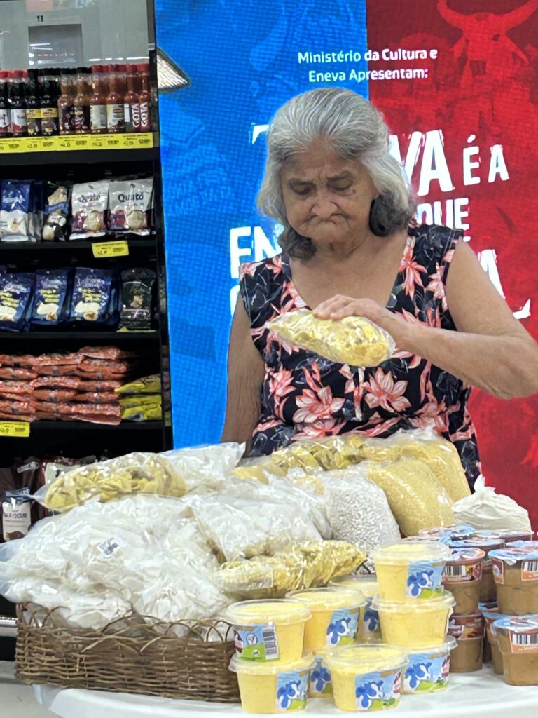 Aliás, falando no biju — que já vi com as cores azul e vermelho —, percebi que o produtor precisa de uma logomarca no saquinho, para dar melhor apresentação e informação ao consumidor. Sugeri ao Meinha que procurasse o SEBRAE para essa orientação.