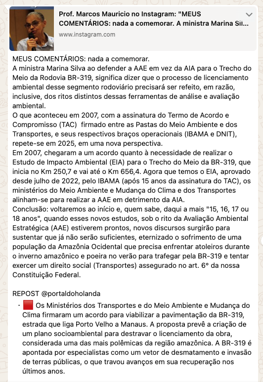 Fico impressionado como ainda há quem acredite na “notícia” divulgada hoje. Mais impressionante ainda é ver “assessores” da área ambiental do governo estadual induzirem o chefe do Executivo a emitir nota oficial dizendo que agora a BR-319 vai sair.