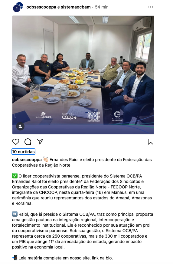 Segundo Ernandes Raiol, “o momento é de união e estratégia para valorizar o papel das cooperativas no desenvolvimento sustentável da região. Vamos trabalhar para ampliar parcerias e garantir mais acesso a políticas públicas, crédito e capacitação”.