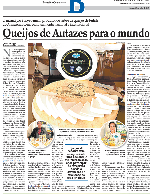 Mais uma vez o nosso centenário JC, o Jornal do Commercio, com matéria exclusiva e de alta qualidade com foco no agronegócio do Amazonas. Não adianta os gols contra de ongueiros, de ambientalistas que só atendem aos países poluidores em razão da captação de recursos. Nosso estado precisa produzir alimentos para garantir nossa soberania e segurança alimentar e nutricional, em especial no interior do continental Amazonas. Só falta nossos governadores e parlamentares sairem do colo dessa turma para tirar nosso povo do isolamente e da pobreza. Parabéns Autazes! Parabéns guerreiros produtores! Vocês merecem esse destaque. Parabéns ao jornalista Evaldo Ferreira.