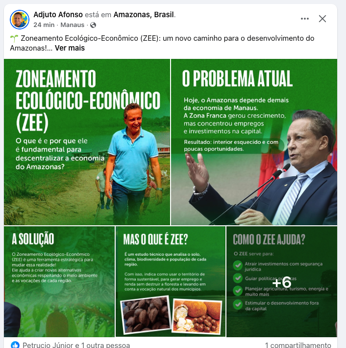 Nota dez para a postagem do deputado estadual Adjuto Afonso sobre o ZEE.