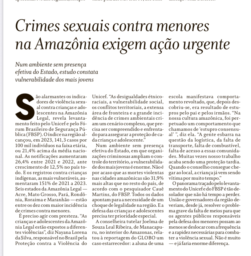 Esse artigo publicado em O Globo é revelador. Inclusive traz um relato de Manacapuru, interior do Amazonas, que sintetiza nossa realidade. Há uma frase que deveria servir de guia para qualquer gestor sério: “…todos os dados apontam para a necessidade de um choque de legalidade na região…”.