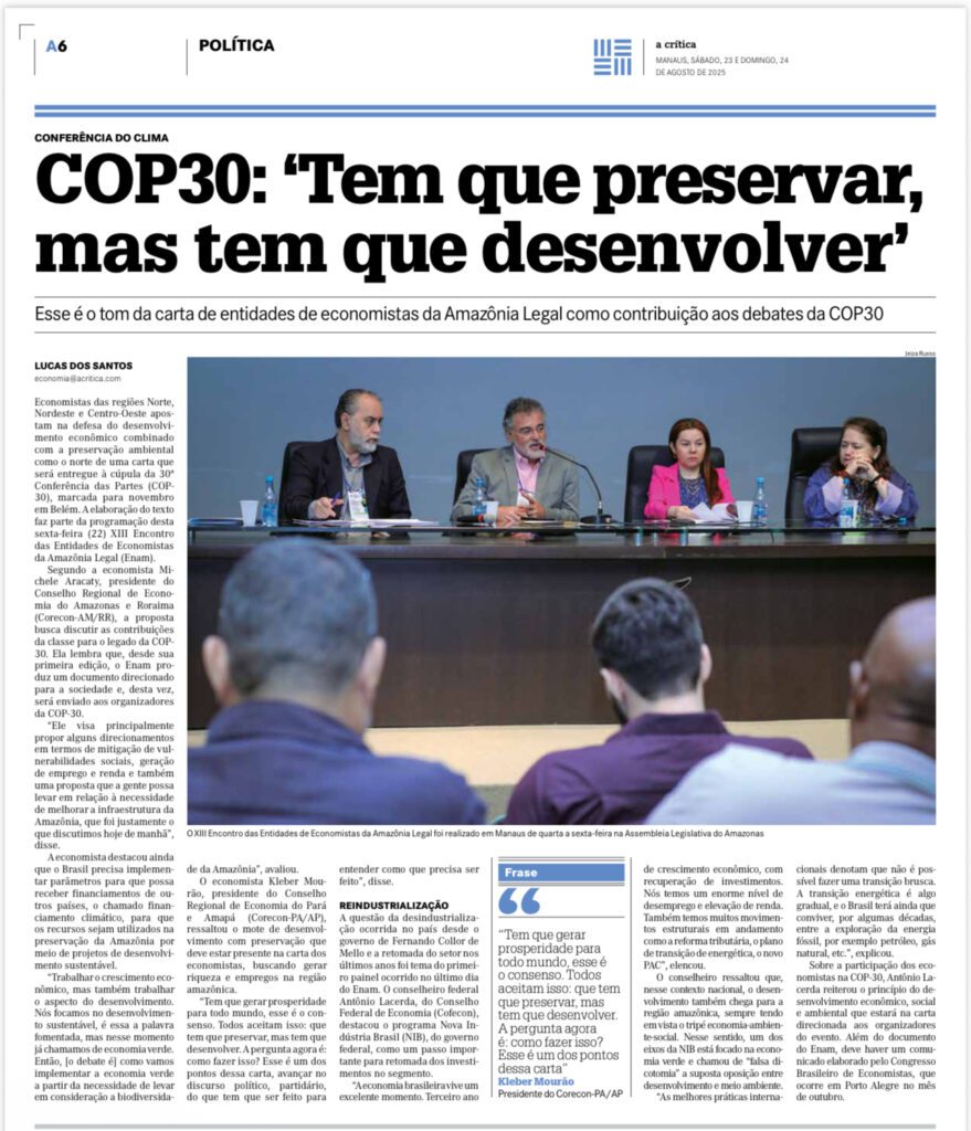 O CORECON tratou corretamente de pautar a necessidade de preservar e desenvolver. No entanto, a escolha do convidado levanta questionamentos: o dirigente da FAS não defende o Zoneamento Ecológico-Econômico do Amazonas (ZEE-AM), manifesta oposição ao asfaltamento da BR-319, e mantém relações controversas entre a FAS e a Secretaria de Meio Ambiente (SEMA).