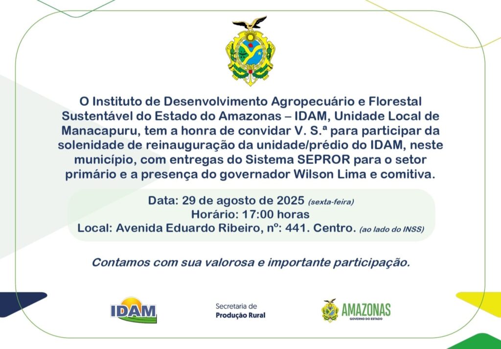 Nosso IDAM merece! Mande fotos da reinaguração para registrar neste espaço que é do AGRO amazonense. Que seja uma boa solenidade!