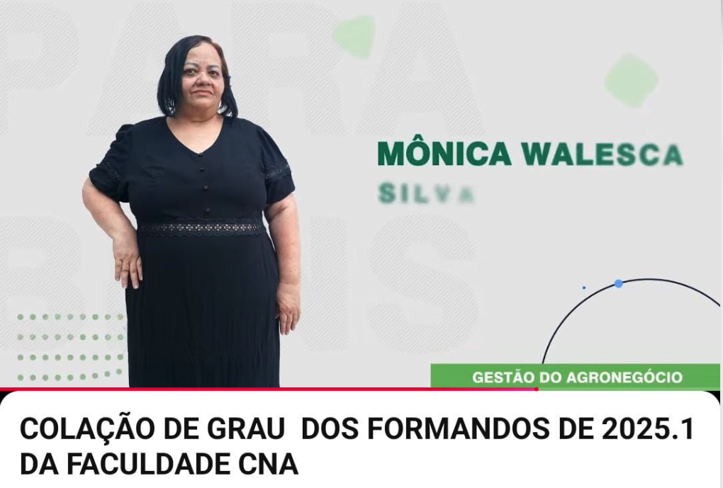 Com sua participação e conclusão na Faculdade CNA, Mônica reafirma seu compromisso em contribuir com o crescimento do agronegócio amazonense, levando ao campo a visão estratégica, a inovação e a sustentabilidade necessárias para enfrentar os desafios do mercado.