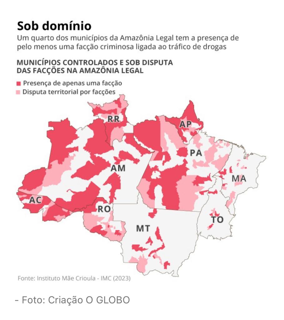 Esses dois presidentes estão brincando com o nosso povo. A matéria publicada em O Globo mostra de forma clara a dimensão que as facções criminosas já alcançaram na região amazônica. Em meio a essa realidade, surge o presidente da Colômbia — convidado especial de Lula — defendendo a legalização da cocaína como “solução”. Será que essa fala foi combinada previamente?