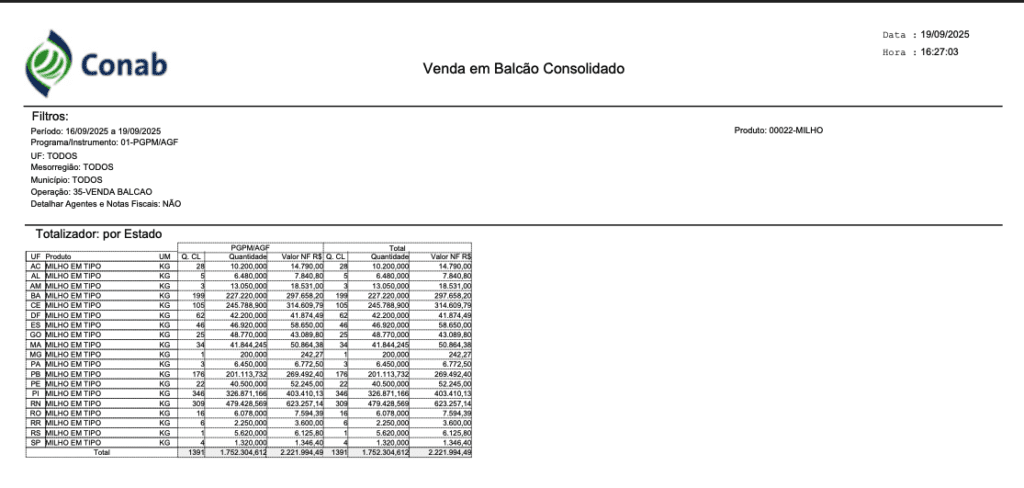Acessei o site da CONAB e constatei que, em QUATRO dias, atenderam apenas SEIS clientes. Com números tão ridículos, parece até que não existe pequena e média criação de animais no nosso Estado.
