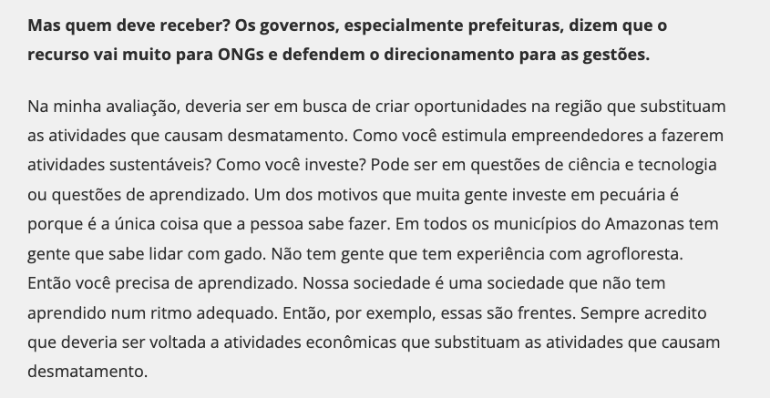 O senhor disse que precisamos de ação, não apenas de intenções. Concordo plenamente. Sem transparência, com salários altos em diretorias e foco em consultorias, as ONGs não entregaram resultados compatíveis com os bilhões recebidos. O MPF e o TCE já investigam a relação entre a SEMA e FAS, mas sem impacto prático até agora.