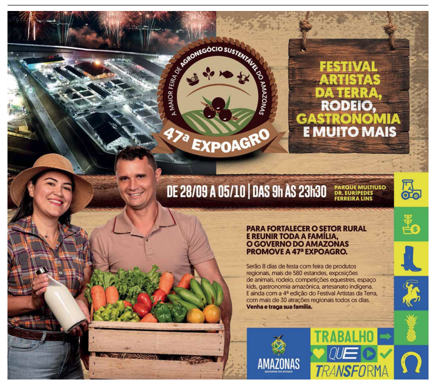 Nessa pauta tão importante para o setor primário, o governo Wilson Lima cumpriu a promessa feita ainda na campanha de 2018: resgatou a EXPOAGRO, que estava parada havia cinco anos, realizou até edição virtual durante a pandemia, transferiu o gabinete para o evento e pôs fim à velha prática de apenas lançar pedra fundamental sem dar continuidade. Aqui vai meu reconhecimento ao Petrucio e toda sua equipe nessa retomada que aconteceu em 2019. Hoje, o Estado conta com um espaço que, a cada edição, fica mais estruturado e bonito — um lugar que já podemos chamar de nosso Parque de Exposição Agropecuária Eurípedes Ferreira Lins.