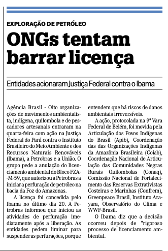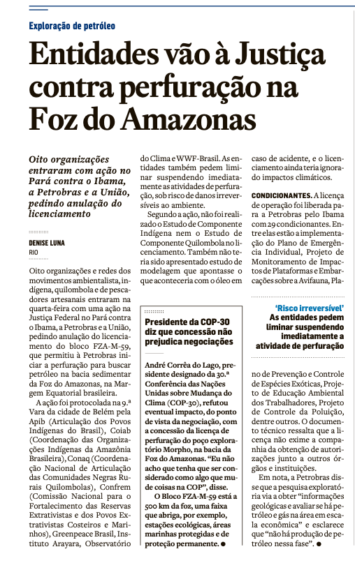 De novas “ELAS”, as mesmas ONGs que são contra o reasfaltamento da BR-319 agora entram na Justiça para travar a licença do Ibama que permitiria a exploração de petróleo na Foz do Amazonas. Curioso notar que boa parte dessas organizações recebe recursos da Noruega para atuar contra o nosso desenvolvimento — enquanto a própria Noruega explora petróleo e mineração em mar profundo. O mais lamentável é ver nossos ex e atual governadores (Eduardo, Omar e Wilson) em silêncio, alinhados a ONGs que parecem desejar um Amazonas eternamente pobre, doente, isolado, sem emprego, sem dignidade e sem um ZEE-AM efetivo. Se continuar assim, atendendo essas ONGs bilionárias, esse povo vai morrer esperando o “futuro” prometido pelos ambientalistas — um futuro que NUNCA chegará para a nossa região, só para eles e elas. Até quando o MP e o MPF continuarão aceitando a vida miserável do povo que preservou — e continuará preservando — a nossa floresta?