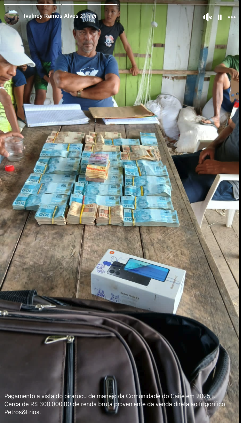 São R$ 300 mil pagos pelo frigorífico Petros & Frios à Comunidade do Caité. A postagem é do meu amigo Ivalney Ramos, profundo conhecedor da atividade e defensor do manejo sustentável.