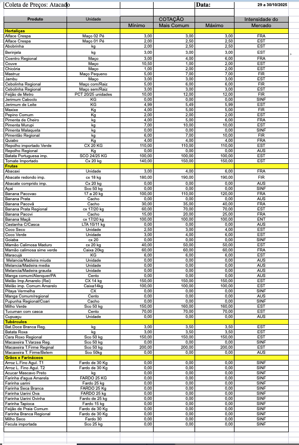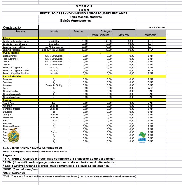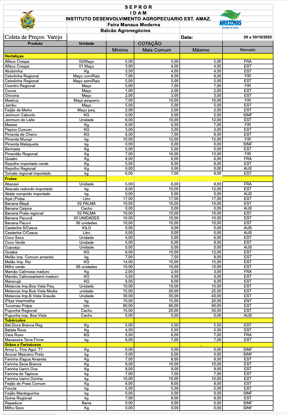 Clique no link abaixo para conhecer o PREÇO de VENDA de uma grande lista de produtos regionais praticados na capital do Estado, Manaus.