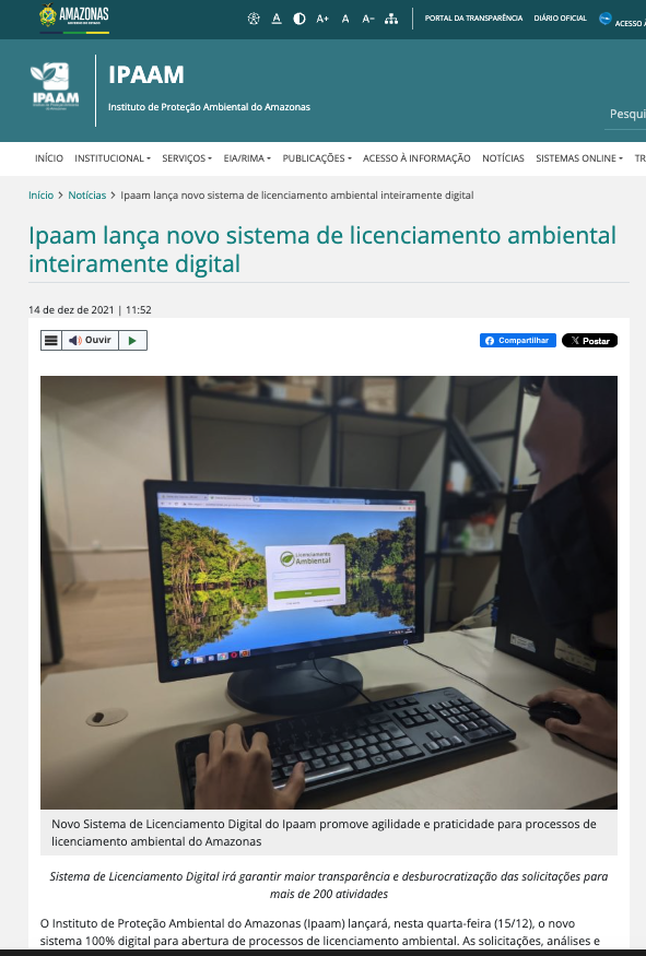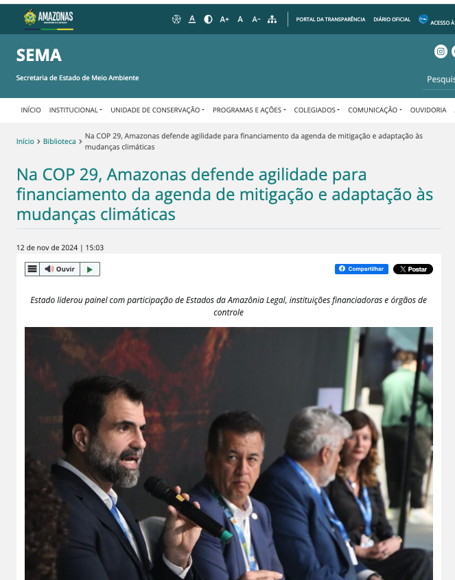 Abaixo, tem dois prints da SEMA/IPAAM falando em agilidade no licenciamento em 2021 (nada até hoje), e o titular da SEMA em Baku com o mesmo discurso de sempre. O que mudou no Amazonas? Só o gasto do cofre público que ficou mais vazio com diárias e passagens. O caboclo segue na miséria preservando o verde para eles.
