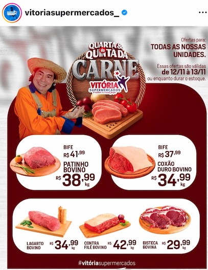 Abaixo, divulgo os preços praticados hoje pelo Supermercado Vitória. Detalhe importante: no Vitória o preço é por quilo, enquanto no PREME são compradas toneladas, não é apenas UM KG. QUAL A CARNE ENTREGUE?