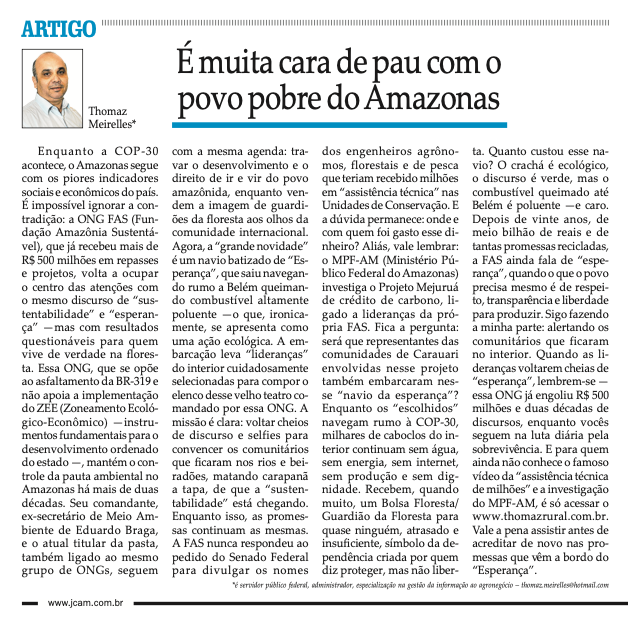 O Portal Thomaz Rural recebeu uma mensagem do Daniel Araújo, líder comunitário e liderança de território do Rio Negro, onde