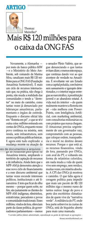 Meu artigo desta semana no Jornal do Commercio. Escrevo no JC desde 2003, 22 anos, mais de mil publicações, sempre defendendo o desenvolvimento do SER HUMANO no preservado Amazonas.