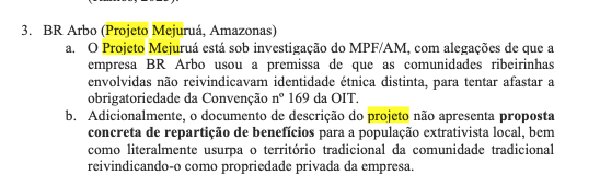Recomendo que leiam esses dois documentos publicados ontem, 21/11/2025, e também acessem o site do MPF-AM para entender o que está acontecendo no Projeto Mejuruá, em Carauari, onde aparece o nome da BR ARBO. Vejam o que o MPF-AM já afirmou sobre quem representava essa empresa.