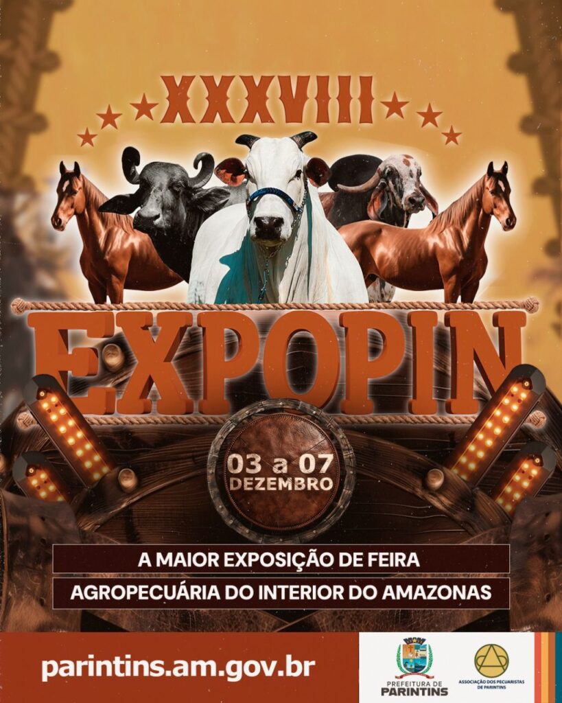 De 03 a 07 de dezembro, o Parque de Exposições Luiz Lourenço de Souza será palco da 38ª Expopin – a maior feira agropecuária do interior do Amazonas. Nesta edição, mais uma vez, o público vai acompanhar concursos de queijos, doces e farinha, além da feira da agricultura familiar, que valoriza os produtos e o talento dos nossos produtores rurais. O evento traz ainda a encantadora Fazendinha, um espaço educativo e interativo, que aproxima crianças e famílias do mundo rural.