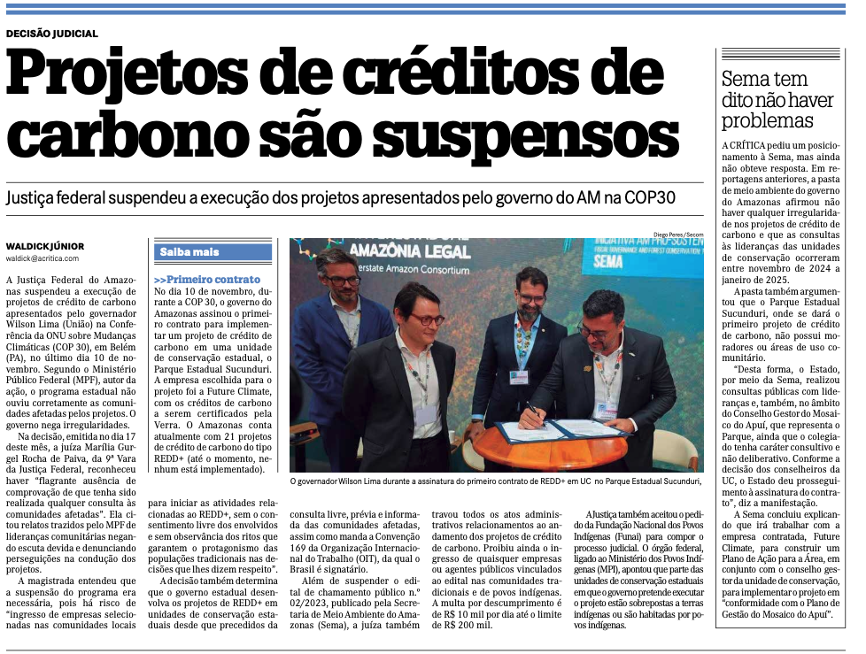 A Secretaria de Estado de Meio Ambiente (SEMA), responsável pela política ambiental do Amazonas, fez o governador Wilson Lima passar uma das maiores vergonhas internacionais. Eu já havia divulgado a decisão da Justiça Federal, mas agora o assunto está em praticamente toda a imprensa do estado, do Brasil e até do exterior. Uma vergonha sem limites!