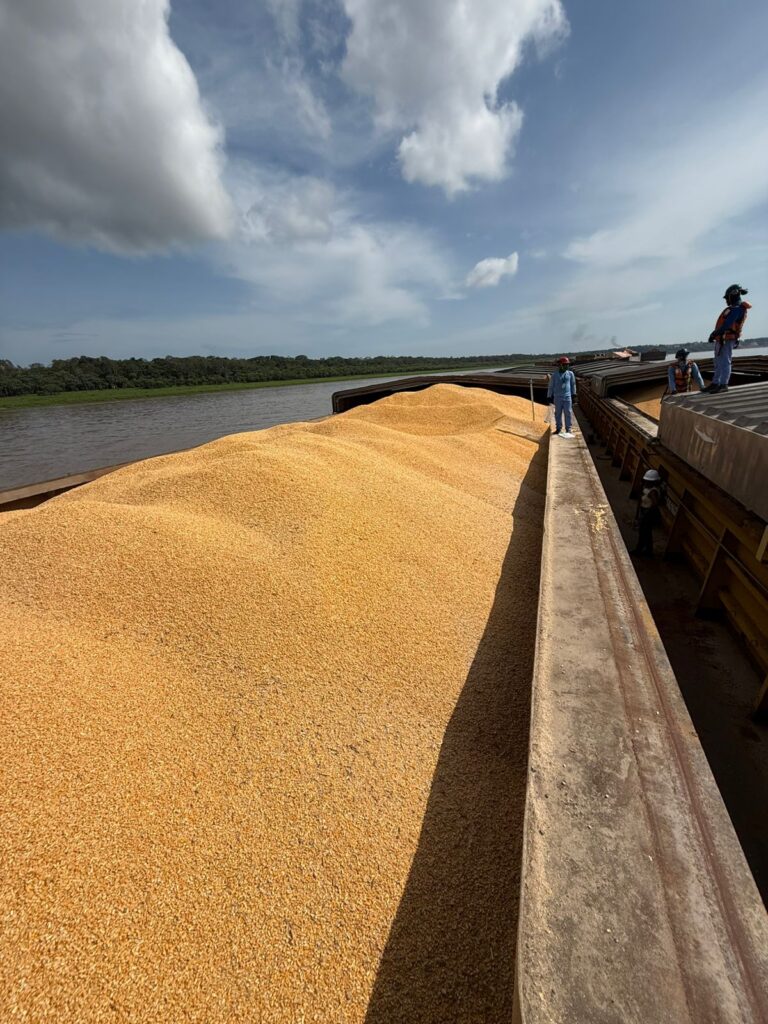 “Um navio, em média, transporta entre 50 e 80 mil toneladas de soja. Os comboios que sobem e descem nossos rios movimentam praticamente a mesma quantidade — equivalente à carga de um navio inteiro. Toda essa soja (ou milho) vem do Centro-Oeste pelo corredor da Hidrovia do Madeira. Outra parte significativa segue pela Hidrovia do Tapajós — hoje a principal rota — e é escoada pelos portos de Santarém, Vila do Conde (Belém) e Santana (AP).”