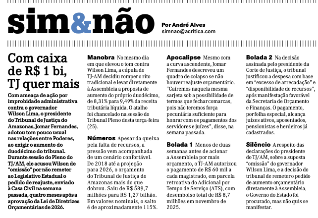 Nada contra o pleito do TJAM por mais recursos — é legítimo que o Tribunal busque melhores condições para cumprir seu papel. Mas, como defensor do setor primário, preciso puxar a brasa para a minha sardinha e lembrar que é o setor primário que alimenta, gera renda e melhora diretamente os indicadores de saúde, educação e segurança nos 62 municípios do Amazonas. Um setor primário forte reduz drasticamente a demanda que chega ao sistema de Justiça, justamente porque diminui conflitos sociais, vulnerabilidade econômica e ilegalidades associadas à falta de oportunidades. Investir na produção rural é investir em prevenção — e prevenir custa muito menos do que remediar. Os servidores do Sistema SEPROR atuam em todas as regiões do Estado, com dedicação, estrutura limitada e salários muito baixos, ainda com reajustes acumulados e defasados. Mesmo assim, o orçamento do setor primário é de R$ 507 milhões, enquanto o TJAM já ultrapassa R$ 1 bilhão.