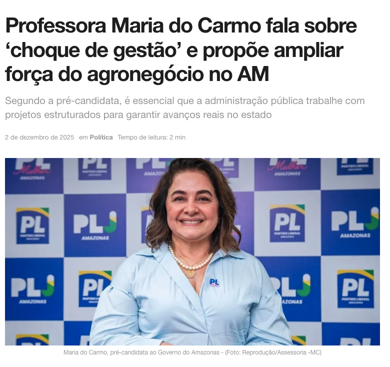 É lógico que é muito bom ver a professora Maria do Carmo falar em ampliar a força do agronegócio no Amazonas. É, de fato, o agronegócio — familiar e empresarial — que coloca comida na nossa mesa e melhora saúde, educação e segurança, justamente os temas mais citados nas eleições e nos quais temos os piores indicadores e mais operações da PF. Não é preciso inventar a roda para fortalecer o AGRO. O primeiro passo, se a intenção for sair do “enxugar gelo”, é fazer o ZEE, aprová-lo na ALEAM e sancioná-lo pelo governador. Depois, basta pegar os 21 projetos prioritários do IDAM/SEPROR — que já estão prontos, elaborados por quem conhece o setor — e considerar as demandas apresentadas em documento único por FAEA, FETAGRI e OCB, entregues a todos os ex-governadores. Também é essencial fortalecer o IDAM, para que as tecnologias que já existem na EMBRAPA finalmente cheguem na ponta. Eu repito: tecnologias que JÁ EXISTEM. Não precisa inventar nada novo. Esses são os primeiros passos. Depois vêm outros. Se seguirmos em outra direção, nada mudará. E um detalhe importante: nenhuma ONG, nem a Marina, nem qualquer ongueiro quer fazer o ZEE. Anote isso. Eles trabalham contra tudo o que eu disse acima. Essas ONGs vivem às custas da miséria do nosso povo — e o mais lamentável é ver que contam com apoio de governadores. Só na SEMA já são 12 anos, uma década e dois anos de ongueiros da FAS (com S), enquanto nosso povo mantém a floresta em pé, mas continua vivendo na miséria.