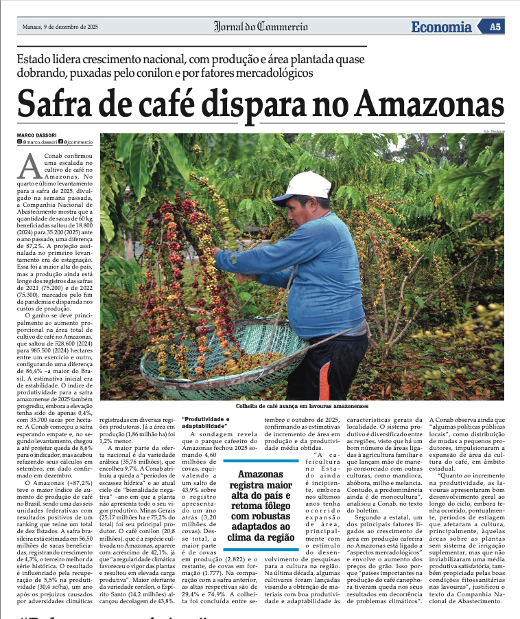 Mais uma vez, o Jornal do Commercio, o nosso JC, por meio do jornalista econômico, Marco Dassori, destaca o crescimento do AGRO no Amazonas. O JC é, de fato, o que mais fala e entende de economia no gigante Amazonas.