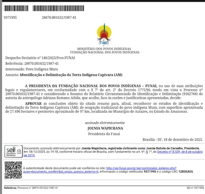 Sou contrário a esse tipo de decisão, porque o principal problema dos povos indígenas não é a falta de terra, e sim a falta de dignidade. O que falta nas comunidades indígenas hoje é alimento regular, renda, água potável, saneamento, energia, internet, telefonia celular, acesso a políticas públicas e atividade econômica sustentável. Demarcar mais terras, por si só, não resolve nada disso. Causa estranheza ver alguns doutores da Universidade Federal do Amazonas (UFAM) insistirem na tese de que mais terra, automaticamente, trará dignidade aos povos indígenas, enquanto esses mesmos indígenas continuam morrendo sem qualquer assistência adequada, sem saúde, sem renda e sem perspectivas reais de futuro. É uma visão acadêmica distante da realidade concreta das aldeias. Esses mesmos “especialistas” ignoram deliberadamente a existência de agricultores familiares que vivem e produzem nessas áreas há anos e que, caso esse processo avance, serão obrigados a sair, ampliando conflitos sociais, insegurança jurídica e injustiça no campo. Não se pode falar em justiça social apagando a realidade de quem trabalha e produz alimento. A FUNAI insiste em concentrar esforços quase exclusivamente na demarcação, enquanto o indígena continua sendo usado como argumento político e instrumento para captação de recursos, sem que isso se traduza em melhoria efetiva da vida nas comunidades. A terra cresce no papel, mas a pobreza, a dependência e a exclusão permanecem. Estamos falando de uma área equivalente a 27 mil campos de futebol. Decisões dessa magnitude não podem ser tomadas a partir de discursos ideológicos ou de gabinetes climatizados, desconectados do chão da floresta e da realidade social. E vale lembrar: as urnas já deram seu recado para alguns doutores. Nem mesmo aliados políticos demonstraram confiança nessas narrativas. O povo percebe quando há discurso, mas não há resultado.