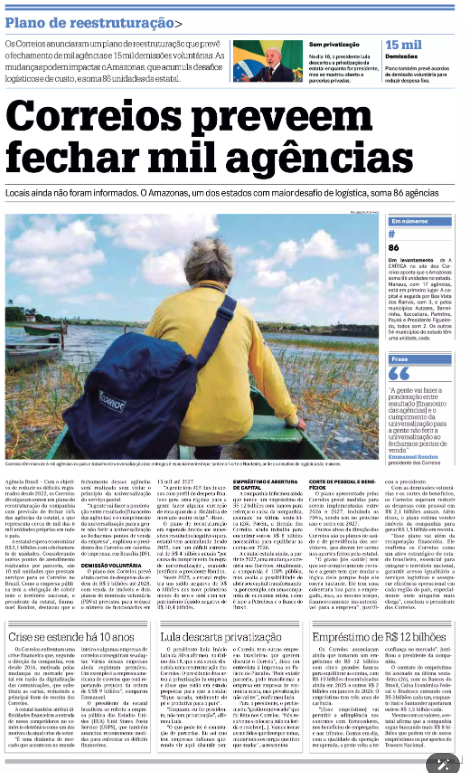 O governo federal insiste em despejar bilhões nos Correios sem enfrentar o problema central: ineficiência estrutural e decisões que penalizam quem mais precisa do serviço. Investe-se muito para manter a máquina funcionando, mas pouco para garantir presença territorial, logística adequada e atendimento digno, especialmente na Amazônia. O resultado é previsível: recursos públicos elevados, serviços cada vez mais precários e comunidades isoladas pagando a conta de escolhas erradas. Não falta dinheiro — falta prioridade, gestão e compromisso com quem depende dos Correios para viver.