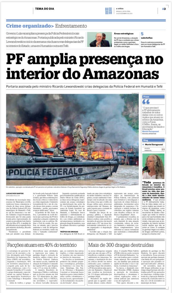 Isso não resolve absolutamente nada. Basta ouvir atentamente o vídeo abaixo, do delegado Alexandre Saraiva, para compreender o que de fato acontece no Amazonas — e, mais importante, qual é a solução. Uma solução que já existe, é baseada em tecnologia, inteligência e integração institucional, mas que deliberadamente não é utilizada.