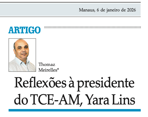 Divulgo, abaixo, o meu artigo desta terça-feira, dia 06/01, direcionado à presidente do TCE-AM, conselheira Yara Lins.