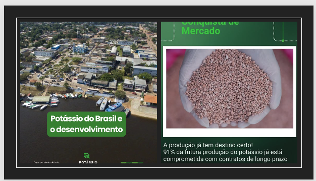 É interessante o dado de que 91% da futura produção de fertilizantes da Potássio do Brasil já tem mercado garantido. Ainda assim, o Brasil continua importando grandes quantidades de fertilizantes, quando aqui mesmo já existe potencial para atender boa parte da demanda nacional. Fica o alerta: se depender das ONGs ambientalistas, esse “futuro” nunca chegará para Autazes, para o Amazonas e para o Brasil — basta ver o que ocorre com a BR-319. A seguir, divulgo algumas ações que já estão sendo realizadas pela Potássio do Brasil na região.