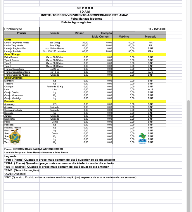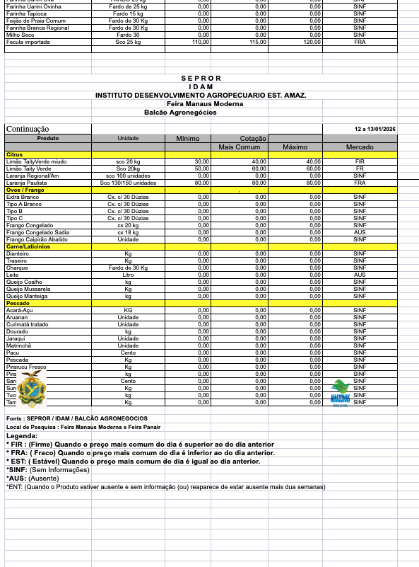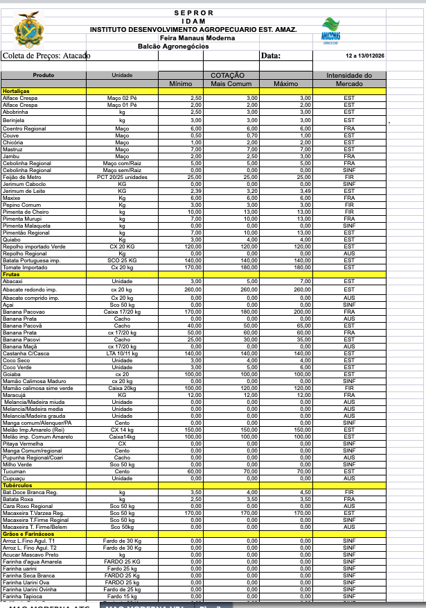 Esse é um trabalho do BALCÃO DE AGRONEGÓCIOS do SEBRAE, em parceria com FAEA, SENAR, FUNDEPEC e SISTEMA SEPROR. A pesquisa é feita pelo colaborador Valdemir BAIA, do IDAM.
