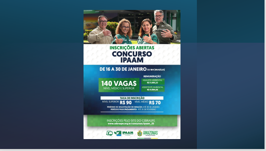 Seguem abertas as inscrições para o concurso público do Instituto de Proteção Ambiental do Amazonas (Ipaam). São 140 vagas para cargos de nível médio e superior, com oportunidades para fortalecer o quadro técnico do Instituto e ampliar a atuação nas áreas de licenciamento, fiscalização e monitoramento ambiental.