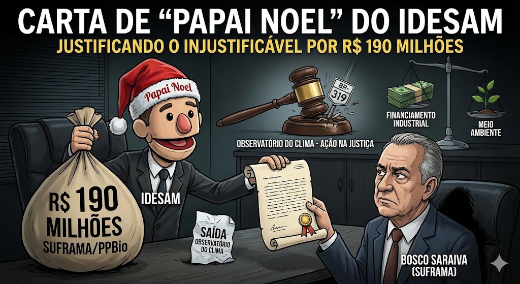 A imagem da carta que estou divulgando é a prova documental do que chamam de “justificar o injustificável”. O documento, endereçado ao Superintendente da SUFRAMA, Bosco Saraiva, é uma verdadeira carta de Papai Noel. E, convenhamos: só acredita nela quem ainda deixa o sapatinho na janela esperando presente. O cenário é claro: o Observatório do Clima entrou na justiça para barrar o licenciamento e o asfaltamento da BR-319, a nossa tábua de salvação logística e social. E quem fazia parte desse Observatório? A ONG IDESAM. A contradição é gritante e bilionária. O mesmo IDESAM que cerrava fileiras com quem tenta isolar o Amazonas quer manter a “coordenação” de R$ 190 milhões do PPBio (Política de Bioeconomia) da SUFRAMA. Recurso esse que, vale lembrar, sai do bolso das indústrias do Polo Industrial de Manaus (PIM). Ou seja, querem usar o dinheiro de quem produz para financiar a agenda de quem trava o desenvolvimento. Diante do risco de perder a chave do cofre, o IDESAM produziu essa carta. No trecho circulado, eles afirmam magicamente: “informamos que o Idesam se retirou do Observatório do Clima”. Que coincidência oportuna. Saíram por convicção ou por conveniência? É uma retirada estratégica apenas para garantir que o fluxo de caixa dos R$ 190 milhões continue intacto? O que causa espanto não é a manobra da ONG — isso já é esperado no jogo de interesses ambientais. O que surpreende é Bosco Saraiva, político amazonense, com toda a sua experiência e sendo aliado histórico do Senador Omar Aziz (defensor da BR-319), ter engolido essa história. Como pode a SUFRAMA entregar o gerenciamento de milhões das indústrias para uma entidade que, até ontem, dava as mãos a quem judicializa o nosso direito de ir e vir? Fica o alerta: se nós não tivéssemos questionado, se não tivéssemos colocado o dedo na ferida, essa carta nem existiria. O IDESAM continuaria posando de parceiro da SUFRAMA enquanto, nos bastidores, seus aliados tentam fechar nossa única saída rodoviária. Dizer que saiu do Observatório agora é fácil. Difícil é explicar para o povo do Amazonas por que o dinheiro do nosso desenvolvimento deve ficar na mão de quem joga contra ele. Abaixo, link de matéria onde pergunto sobre o destino dos 190 milhões.