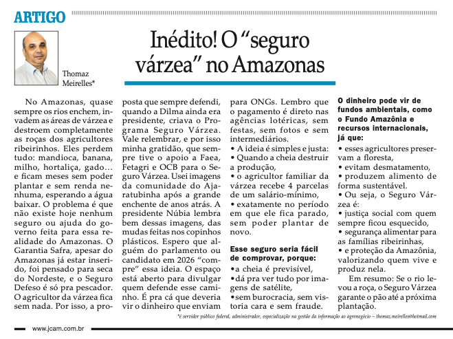 Inédito! O “seguro várzea” no Amazonas