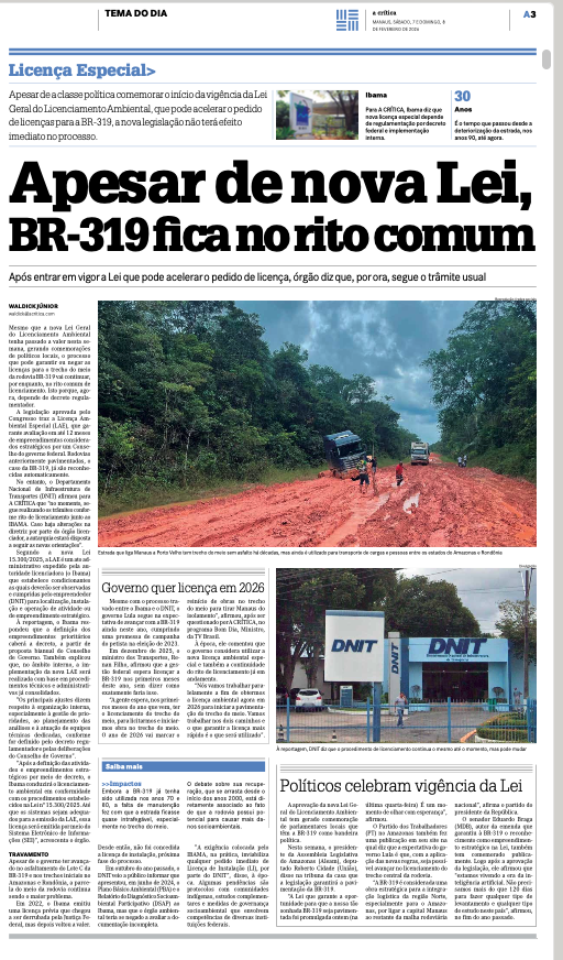 Com quase 20 anos de governos do PT no Planalto — Lula (2003-2010 e 2023-2026) e Dilma (2011-2016) — a edição de hoje de A CRÍTICA, sábado, 07/02/2026, expõe a triste realidade que envolve a tentativa de tirar o Amazonas do isolamento, algo que beneficiaria toda a sociedade: produtores rurais, comércio e indústria. No governo Bolsonaro, a Licença Prévia foi concedida, mas ONGs ambientalistas ingressaram na Justiça e conseguiram travar o processo até hoje. A Licença Prévia (LP nº 672/2022) para o chamado “trecho do meio” — cerca de 400 km mais preservados da BR-319 — foi concedida pelo Ibama em julho de 2022, no final daquele governo. Foi um marco político, já que o asfaltamento da BR-319 é uma promessa de décadas. Porém, a licença desencadeou uma intensa batalha judicial que se arrasta até agora. A Justiça Federal do Amazonas suspendeu a licença após ação do Observatório do Clima. Mesmo assim, a Suframa continua mantendo milhões do PPBio — recursos oriundos da indústria — nas mãos de uma das ONGs (IDESAM) que atuou judicialmente contra um projeto estratégico para o estado. Também causa estranheza o fato de o CIEAM, até hoje sem explicação convincente, ter firmado Termo de Cooperação com a ONG FAS, outra entidade que se posiciona fortemente contra o asfaltamento da BR-319. Suframa e CIEAM precisam rever parcerias com organizações que atuam contra o desenvolvimento do Amazonas. É legítimo perguntar: o que está por trás disso? Os indicadores sociais e econômicos do Amazonas, especialmente no interior, mostram que o modelo adotado até aqui não tem gerado melhoria real para a população. Vale lembrar que, quando governadores — hoje senadores — eram aliados do PT, continuam até hoje, houve recursos para a Ponte e para a Arena, mas e a BR-319? As promessas, mais uma vez, não saíram do papel.