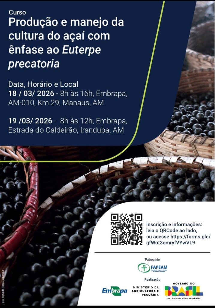 Onde tem FAPEAM e EMBRAPA temos a certeza de que a TECNONOGIA em benefício do PRODUTOR RURAL está em pauta. Vai ser dia 18/03, faça logo sua inscrição.