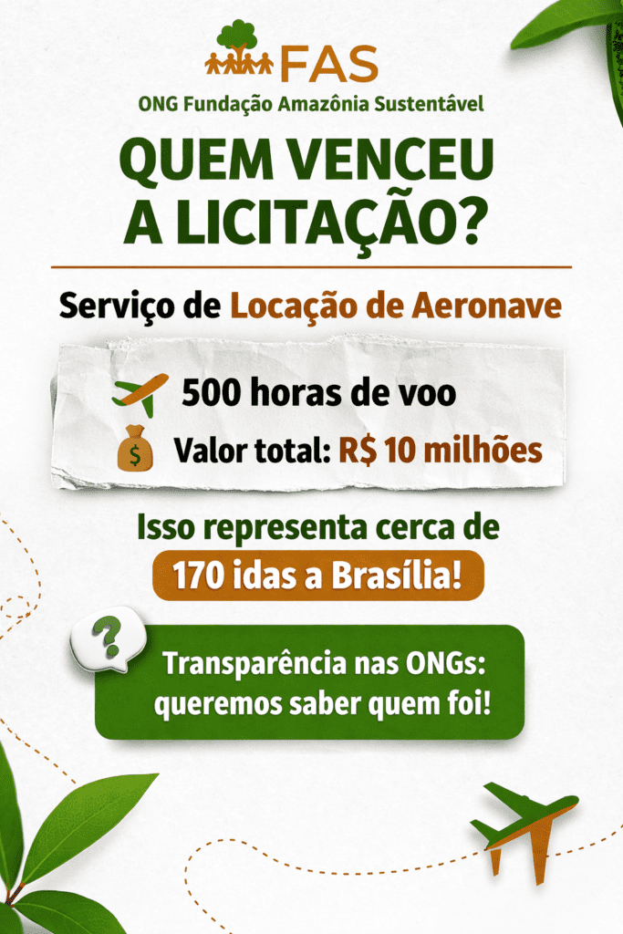 São 500 horas de voo, o que representa cerca de 170 viagens no trecho Manaus–Brasília, com valor estimado em R$ 10 milhões. Enquanto isso, o chamado “Bolsa Miséria” de R$ 100 segue com atrasos há anos para quem realmente precisa. Aliás, também fica a dúvida: qual o motivo de o Estado repassar recursos para a ONG FAS fazer o pagamento? Qual o sentido dessa intermediação? Se o recurso é público, por que não pagar diretamente às famílias, como ocorre em vários outros programas sociais? Esse é um tema que precisa ser explicado — e que, certamente, deveria entrar no debate entre os pré-candidatos ao Governo do Amazonas. Pagamento de serviços ambientais no valor de R$ 100 reais (ficou 14 anos em 50 reais) é IMORAL. Só serviu para dizer que TEM UM PROGRAMA de SERVIÇOS AMBIENTAIS e captar mais recursos estrangeiros que não chegaram na ponta. A CPI das ONGs coordenada pelo senador Plínio Valério mostrou o destino dos recursos. ATÉ QUANDO?