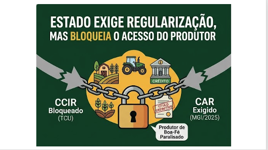 - A Paralisia do Crédito: Sem o título (travado no INCRA), o produtor não tira o CCIR. Sem o CCIR, não faz o CAR. E sem o CAR, as portas do banco se fecham, impedindo o acesso ao crédito.