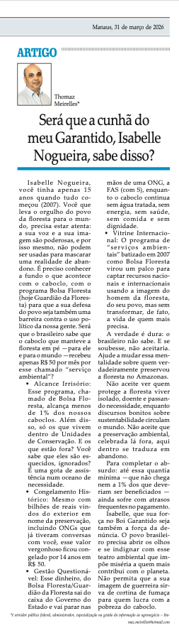 Artigo publicado nesta terça, dia 31/03, no Jornal do Commercio…