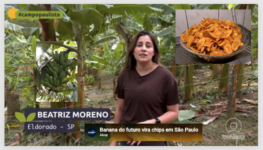 “Essa reportagem foi preparada pelo pessoal do Programa Campo Paulista, que ocupou toda a programação no canal da Alesp. Como podem observar, o material mostra desde o campo até o preparo dos chips da BRS Pelipita, produzidos pela agroindústria Banandi, que apresentou o produto como inovação na Feira de Agronegócios de São Paulo. A BRS Pelipita foi recomendada para o Amazonas em 2004. O esforço para aprovar o projeto no BASA e a publicação do comunicado técnico despertaram o interesse de um produtor de Miracatu, no Vale do Ribeira (SP), que, após muitas tratativas, conseguiu firmar um contrato de cooperação com o CPAA. Acredito que a BRS Pelipita vai deslanchar.” Parabéns à Mirza, que acreditou no potencial da BRS Pelipita e não mediu esforços para sua divulgação.