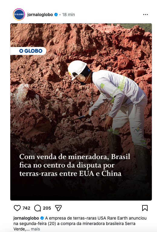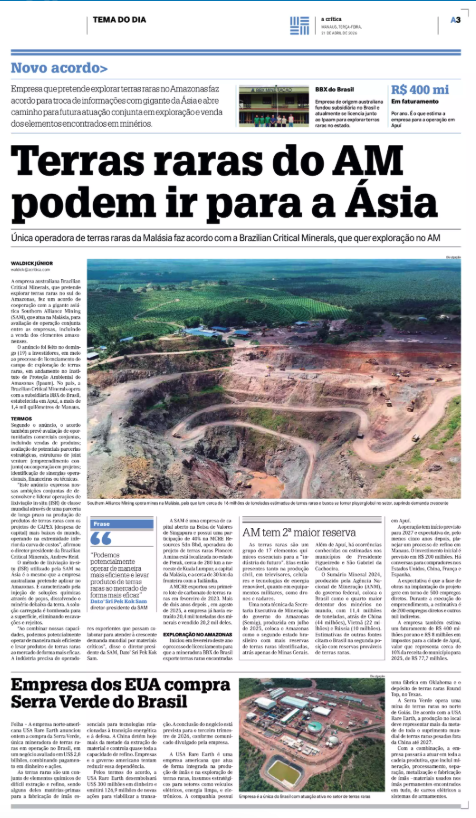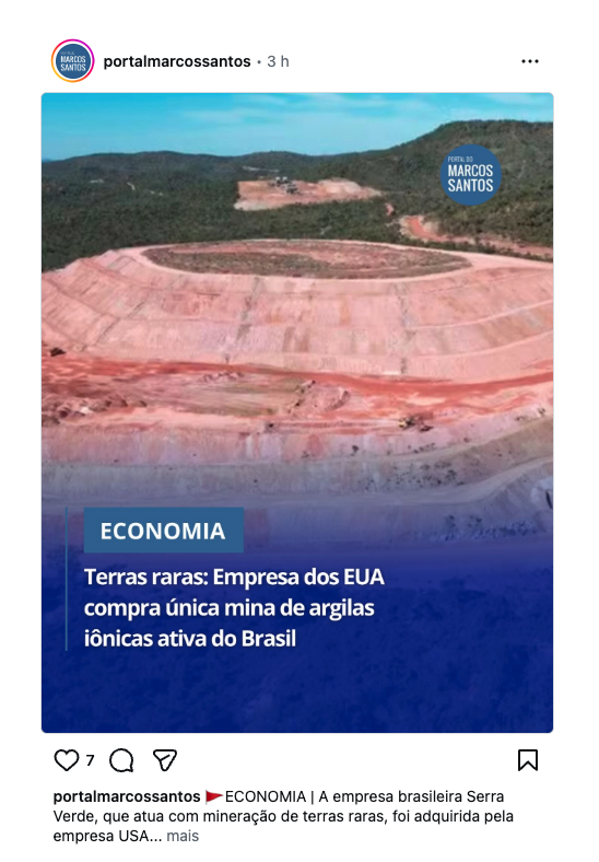 - Ouro Tecnológico: As Terras Raras de Apuí são o motor da economia do futuro. Sem elas, não há transição energética nem tecnologia de ponta.