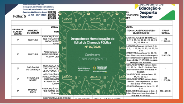 Já está disponível a homologação do edital da Chamada Pública nº 07/2025. Consulte em: seduc.am.gov.br